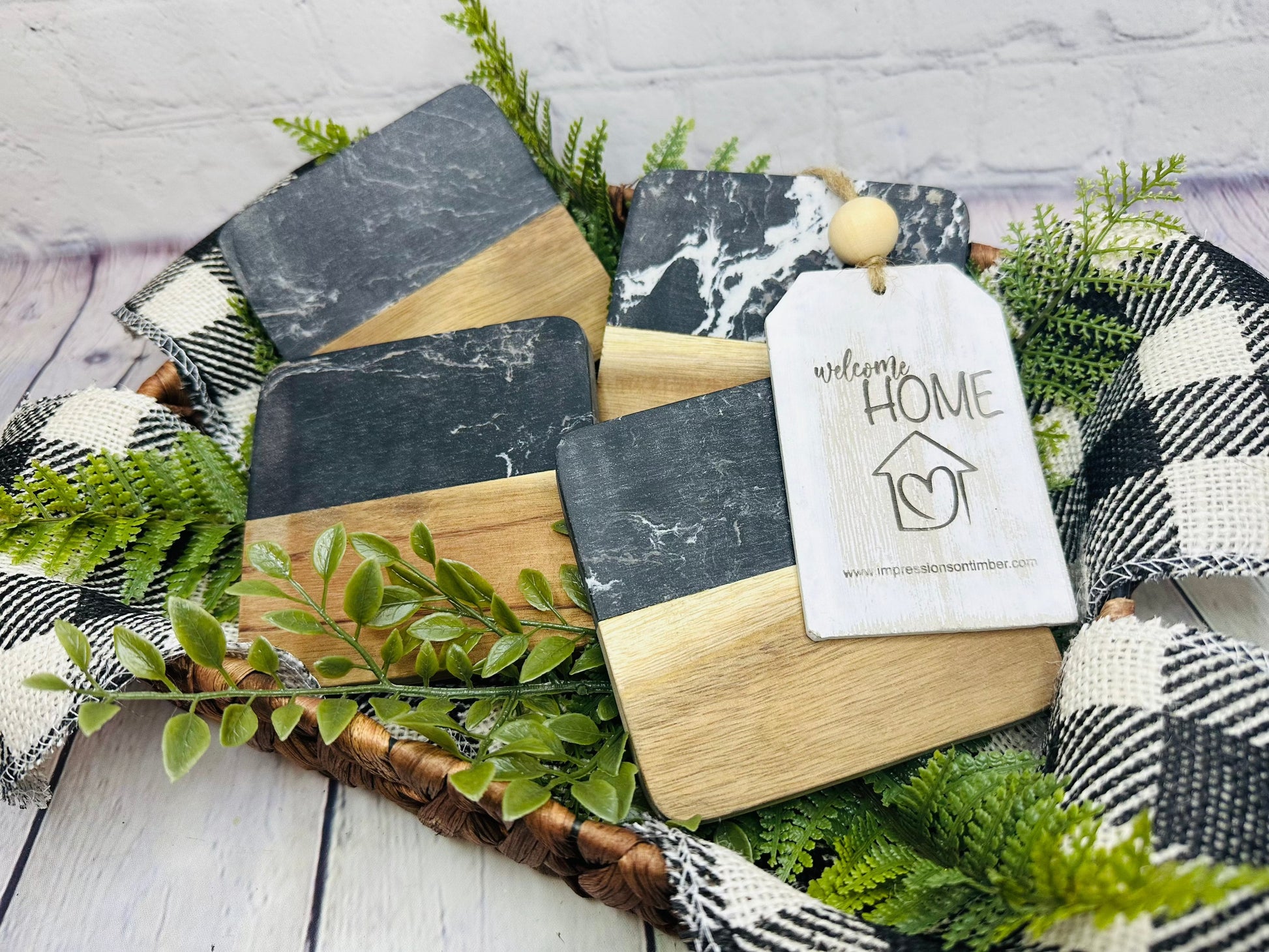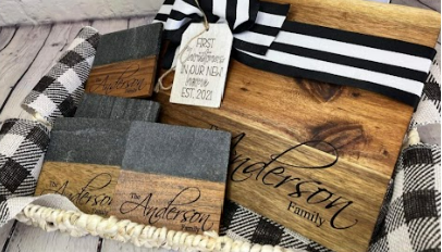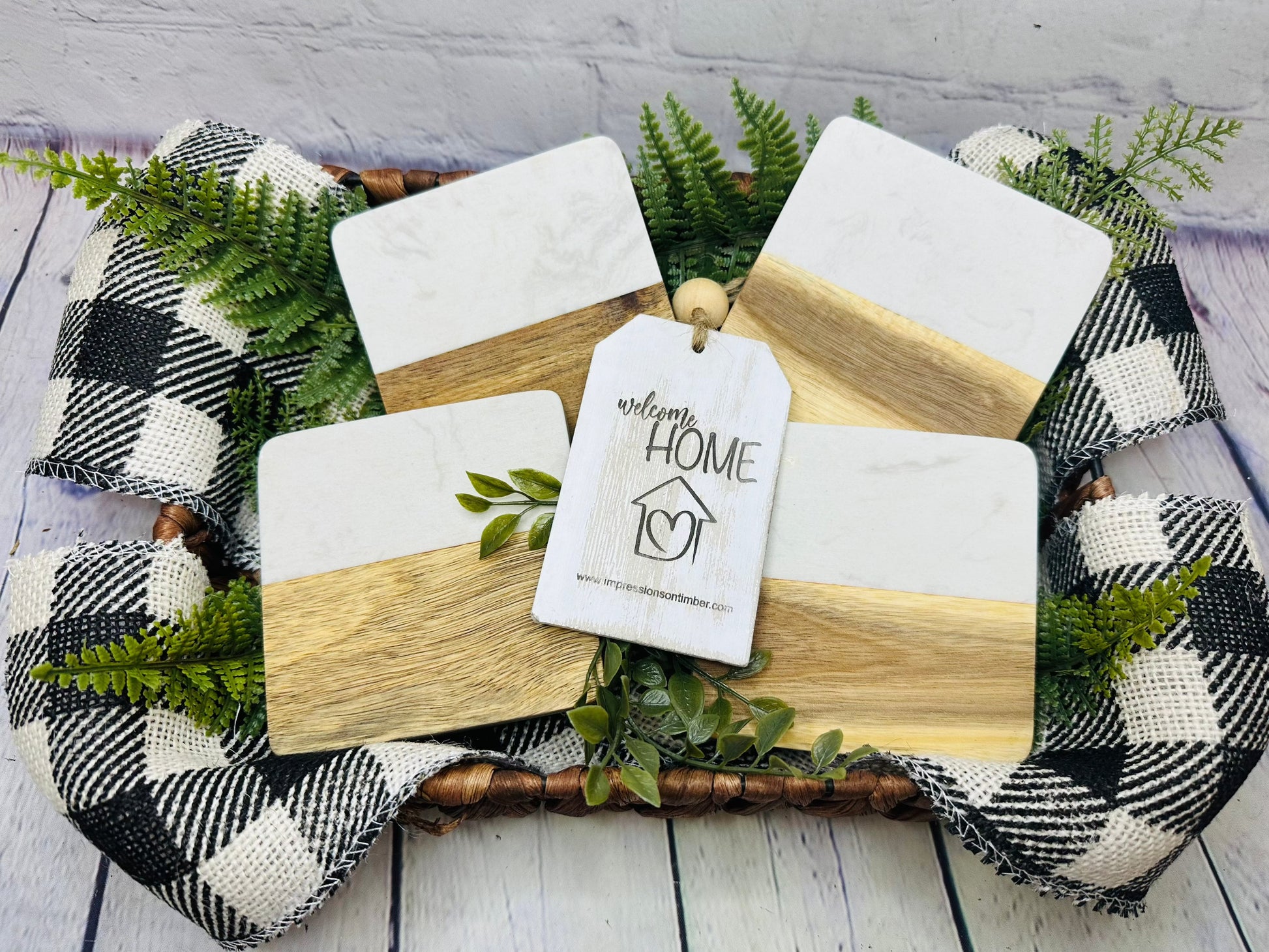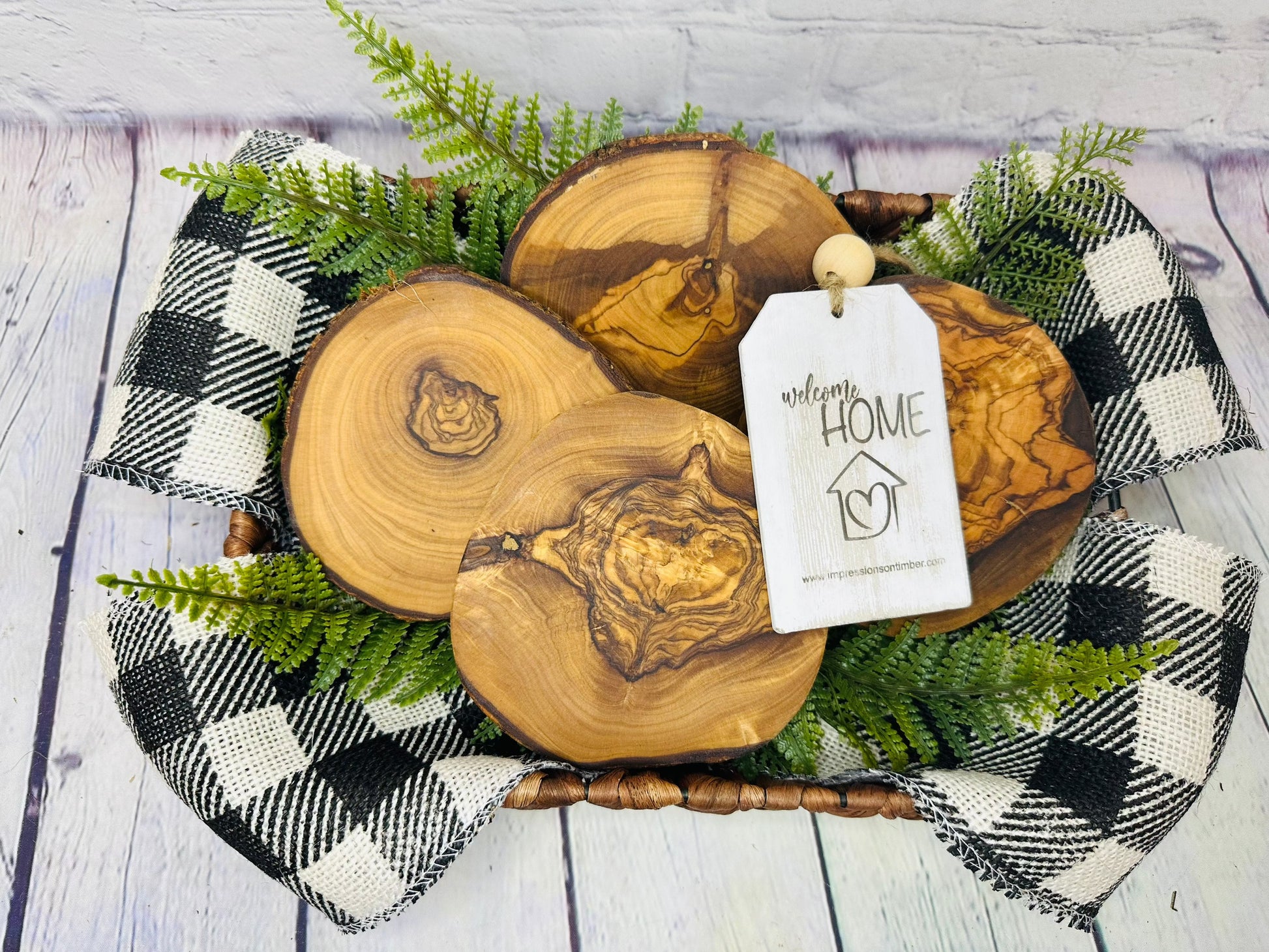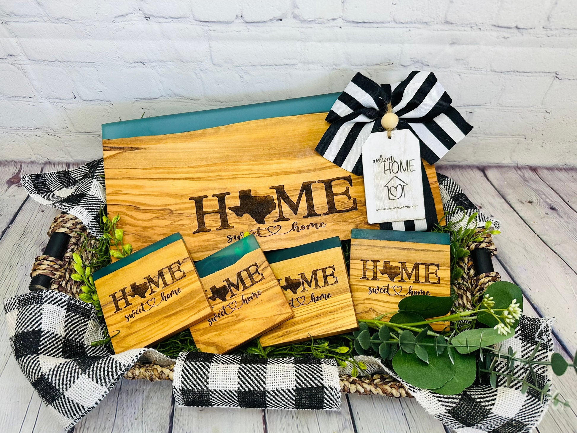 The ultimate basket for the realtor who wants to handpick every product in their client appreciation gift. This basket is the epitome of choice - add the items you want to give, in the material and size you want! This one-of-a-kind gift isn't just something to give, but also stands as an expression of your gratitude and a testament to the strength of your client relationships. Impressions on Timber will handmake each piece to your exact specifications—choose from a variety of designs and fonts or upload your own custom design. The quality of Acacia and Olive Wood ensures that, once engraved, your gift will look simply perfect.
