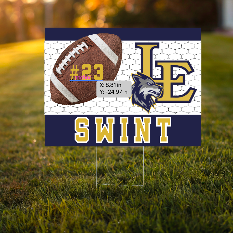 Elevate your support for your favorite Athlete with our vibrant yard signs, perfect for showcasing your school spirit! Each sign is crafted from durable coroplast and comes with a sturdy yard stake for easy display.