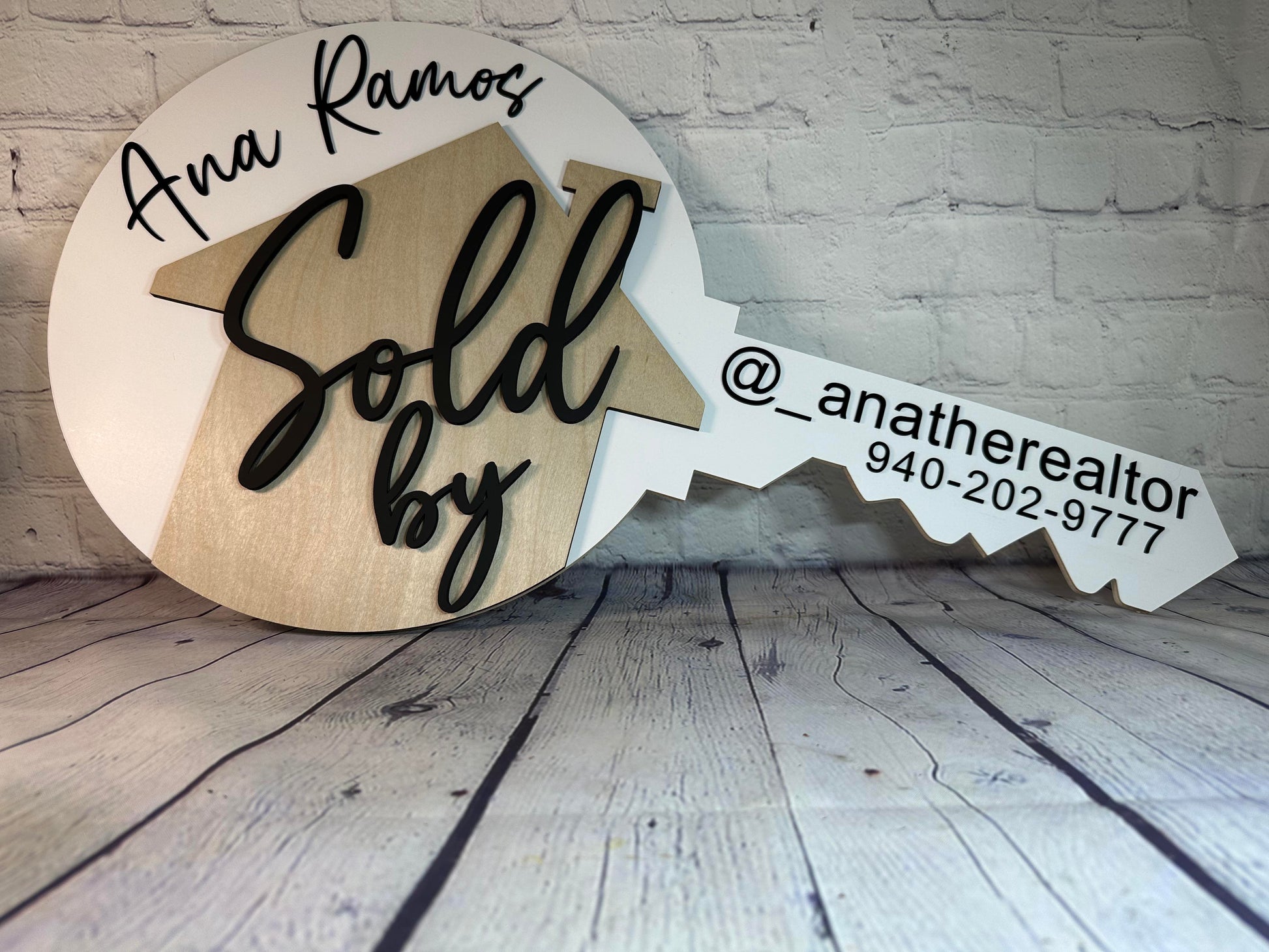 Get creative with your real estate marketing using our Realtor Key! Made from either wood or layered foamboard, this alternative to traditional sold signs makes for great photo props, branding opportunities, and eye-catching promotion. Stand out from the competition with our quirky and versatile Realtor Key!